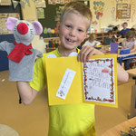 Etwa einmal in der Woche erarbeiten die Schüler*innen der 1. Klasse erste Sätze, Texte und Geschichten. Neben bekannten und bereits erlernten Buchstaben haben die Kinder die Möglichkeit mithilfe ihrer Schreibtabelle auch andere Buchstaben und Laute zu verschriftlichen, oder bestimmte Szenen und Aktionen zu zeichnen. In spielerischer und gestaltungsfreier Umsetzung entstehen so unsere ersten, individuellen Geschichten. Es ist sehr schön zu sehen, wie stolz jedes Kind auf sein eigenes Werk ist und wie wertschätzend und respektvoll mit den unterschiedlichen Geschichten umgegangen wird.